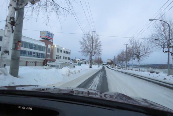 午前6時50分、南岸通り、野付牛自動車学校前から無加川町方向