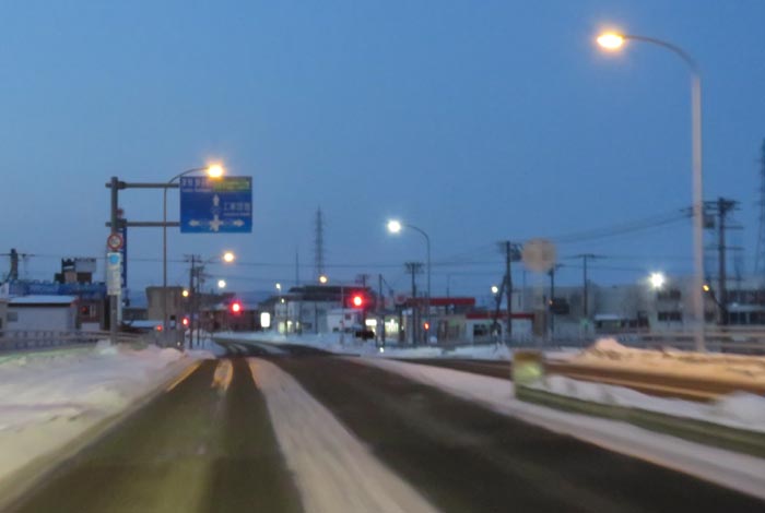 午前6時30分、西3号線とん田通りの北見中央病院前から無加川橋方向