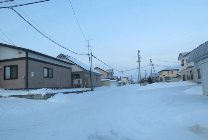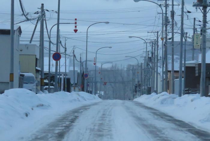 産岸通りから左折して西5号線のバス停前から北光通り方向