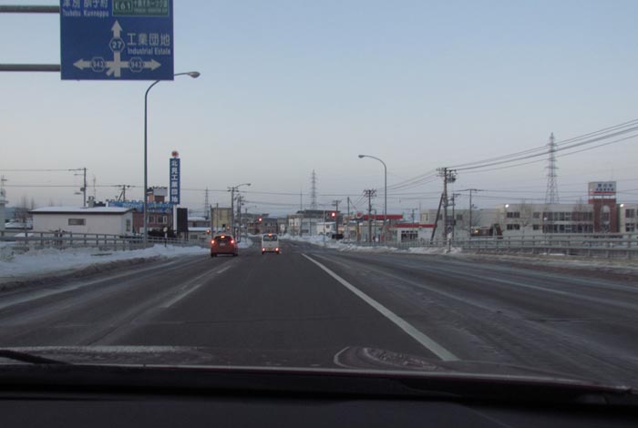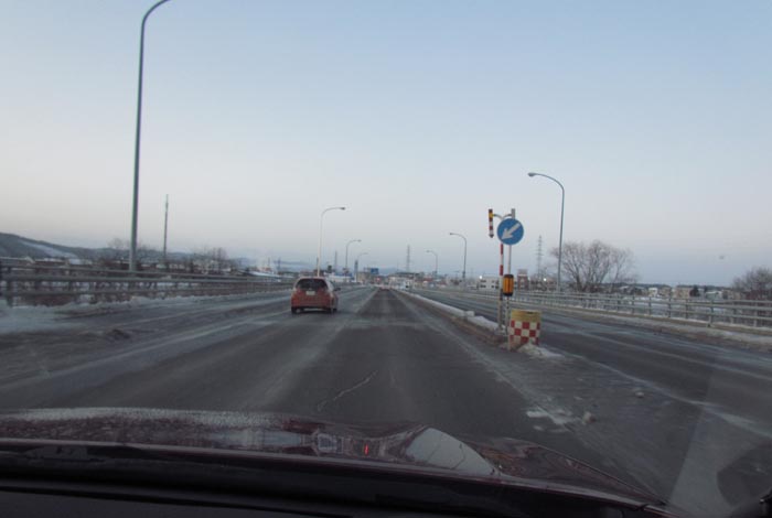 午前6時50分、西3号線とん田通りの北見中央病院前から無加川橋方向