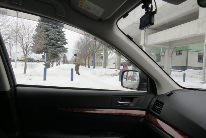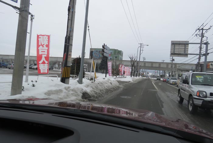 前方がJR石北本線高架橋、写真右が北見駅方向