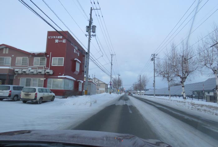 午前6時50分、南岸通り、野付牛自動車学校前から無加川町方向