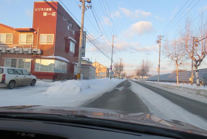 午前6時50分、南岸通り、野付牛自動車学校前から無加川町方向