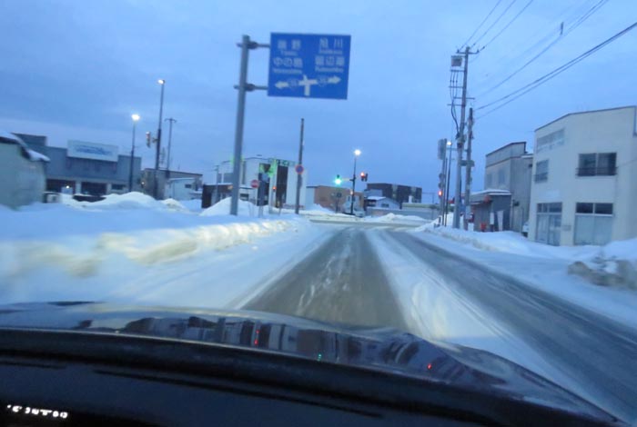 午前6時30分、松浦水産駐車場裏の通りを北3条通り側から北4条通り方向