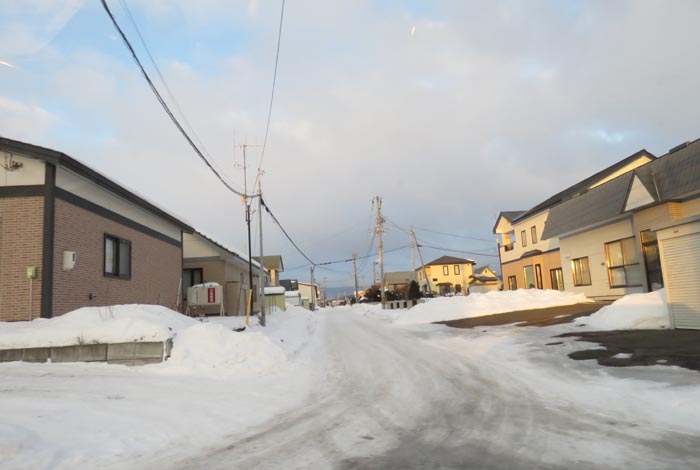 産岸通りから左折して西5号線のバス停前から北光通り方向