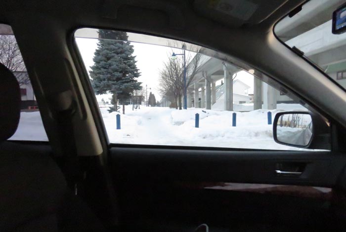 前方がJR石北本線高架橋、写真右が北見駅方向