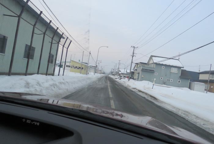 産岸通りから左折して西5号線のバス停前から北光通り方向