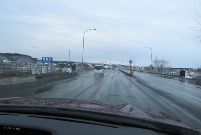 午前6時50分、西3号線とん田通りの北見中央病院前から無加川橋方向