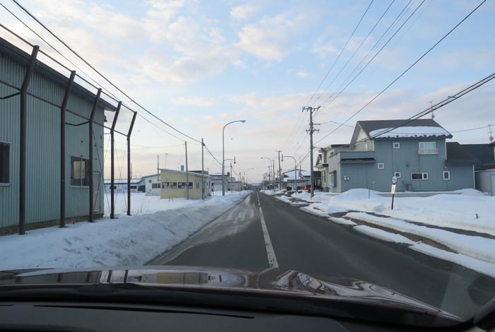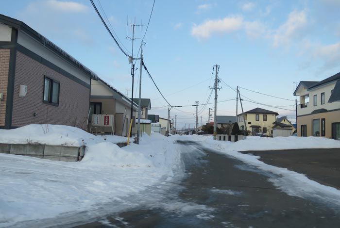 産岸通りから左折して西5号線のバス停前から北光通り方向