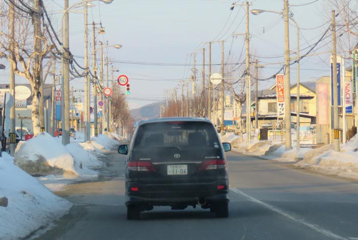 午前6時50分、南岸通り、野付牛自動車学校前から無加川町方向