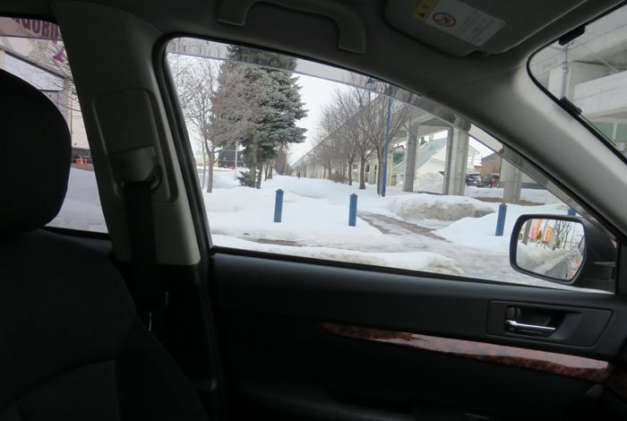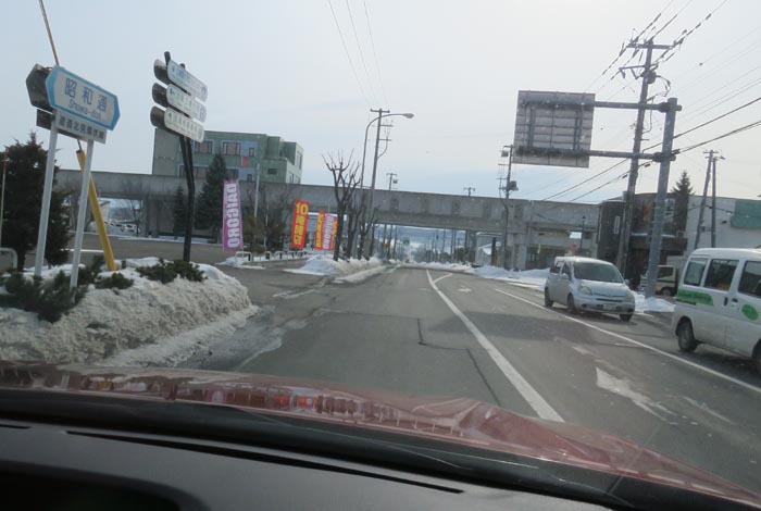 前方がJR石北本線高架橋、写真右が北見駅方向