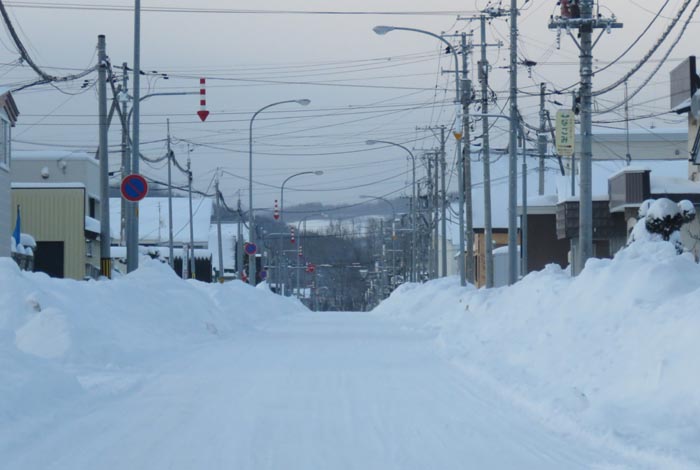 産岸通りから左折して西5号線のバス停前から北光通り方向