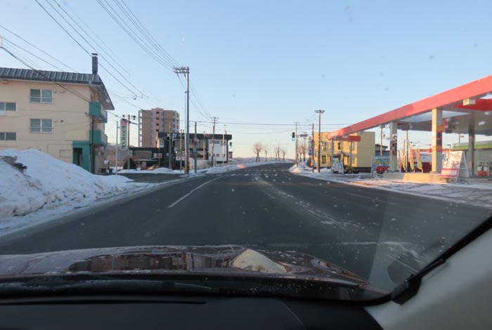 午前6時20分、西3号線とん田通りの北見中央病院前から無加川橋方向