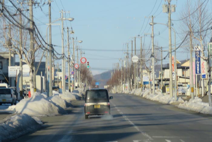 午前6時50分、南岸通り、野付牛自動車学校前から無加川町方向