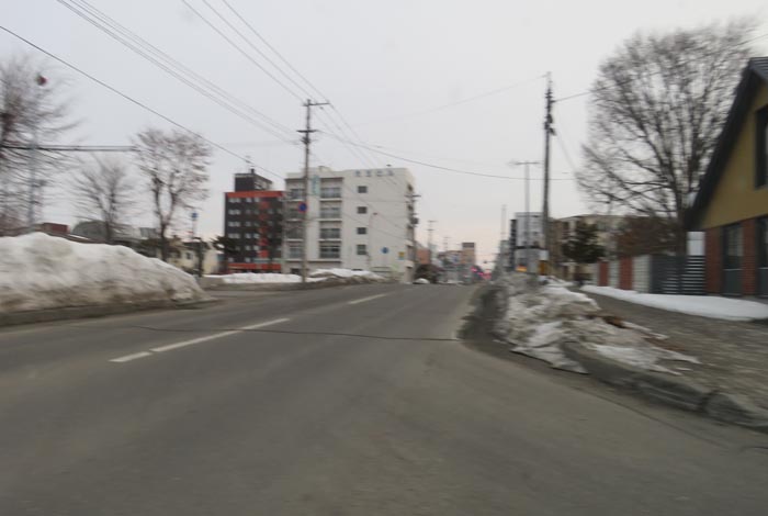午前6時40分、松浦水産駐車場裏の通りを北3条通り側から北4条通り方向