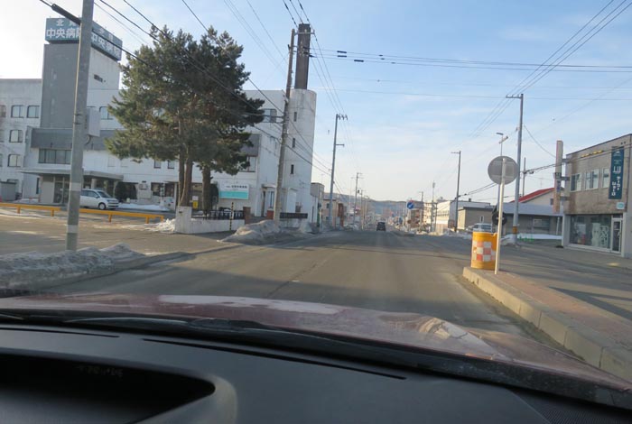 とん田通り、北見中央病院から南大通り交差点方向