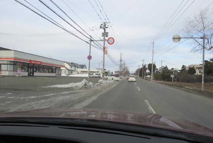 午前6時50分、南岸通り、野付牛自動車学校前から無加川町方向