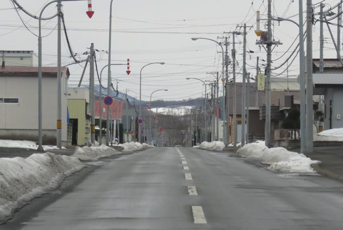 産岸通りから左折して西5号線のバス停前から北光通り方向