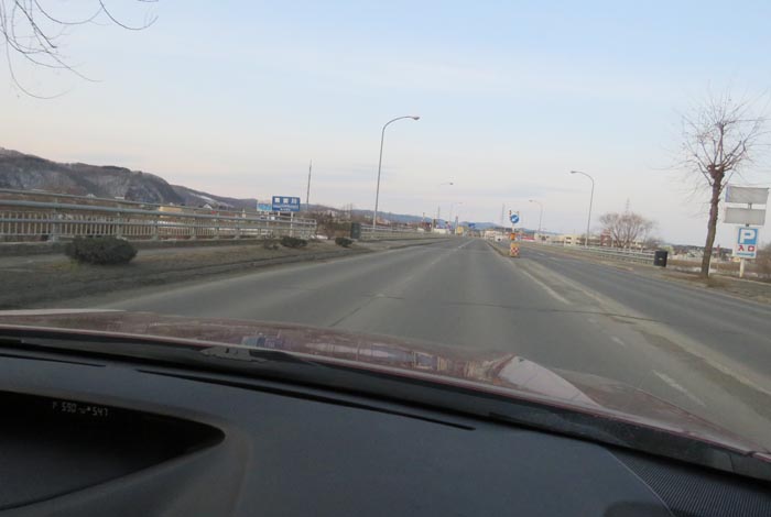 午前5時40分、西3号線とん田通りの北見中央病院前から無加川橋方向