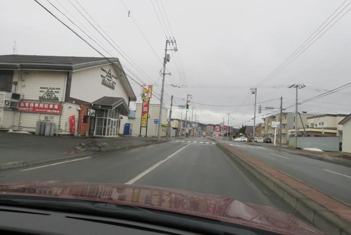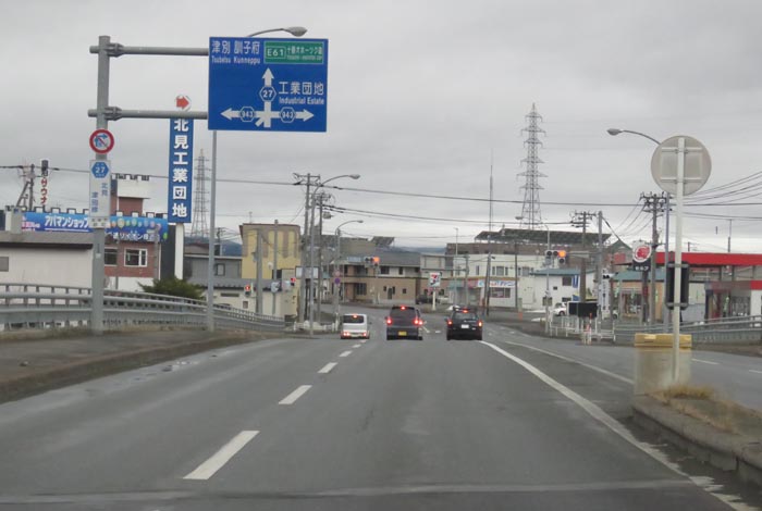 とん田通り、無加川橋を渡り錦町の南岸通り交差点交差点