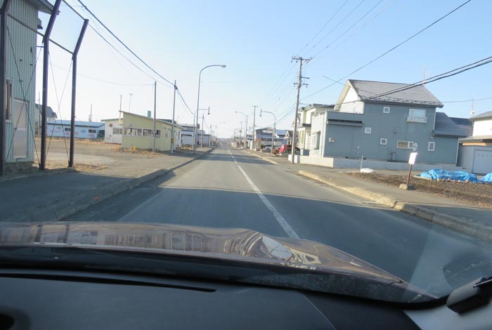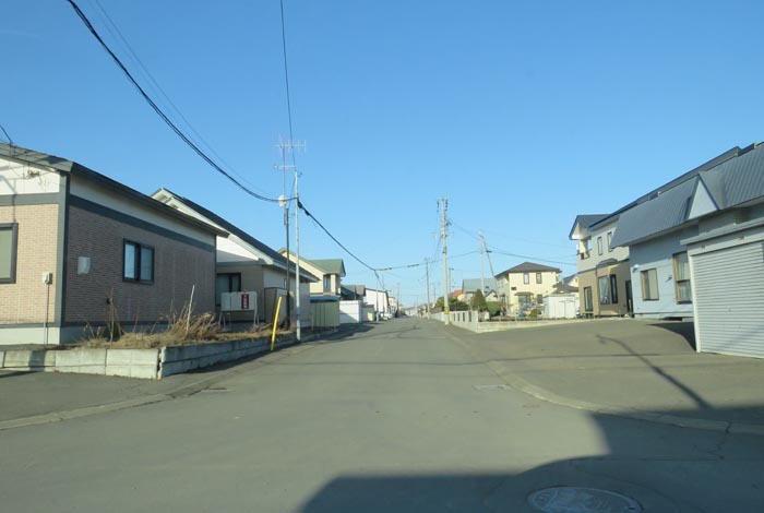 産岸通りから左折して西5号線のバス停前から北光通り方向