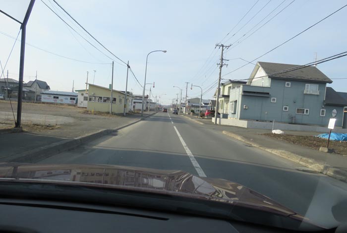 産岸通りから左折して西5号線のバス停前から北光通り方向
