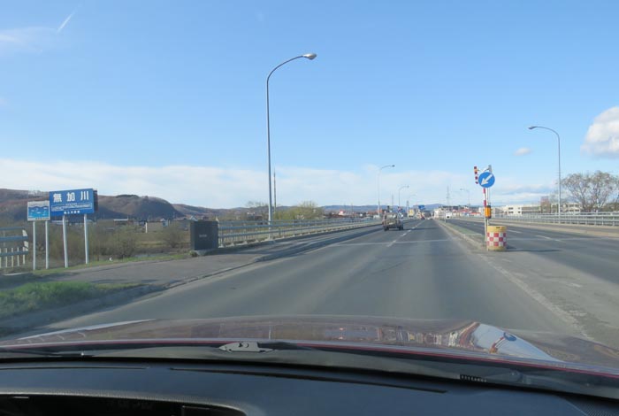とん田通り、無加川橋を渡り錦町の南岸通り交差点交差点
