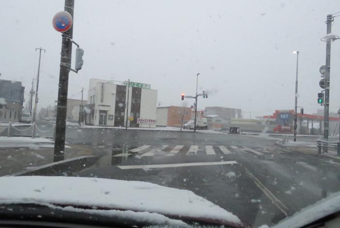 午前5時30分、松浦水産駐車場裏の通りを北3条通り側から北4条通り方向