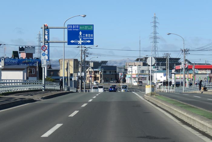 とん田通り、無加川橋を渡り錦町の南岸通り交差点交差点