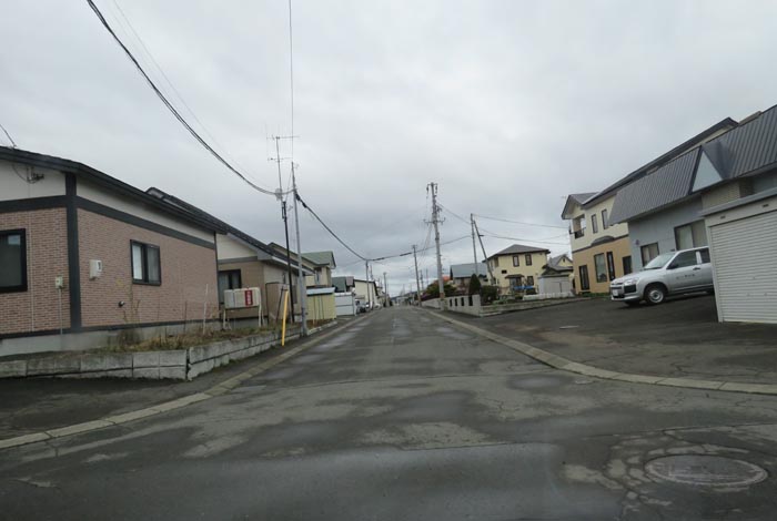 産岸通りから左折して西5号線のバス停前から北光通り方向