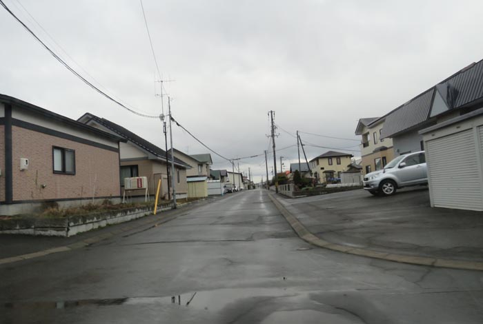 産岸通りから左折して西5号線のバス停前から北光通り方向