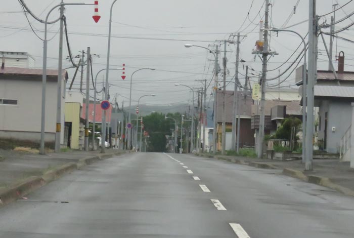 産岸通りから左折して西5号線のバス停前から北光通り方向