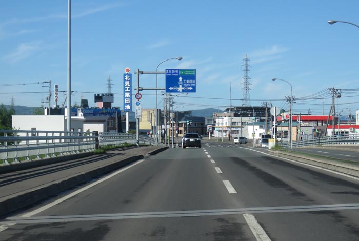 とん田通り、無加川橋を渡り錦町の南岸通り交差点交差点
