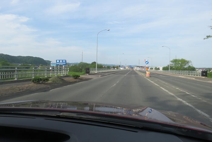 とん田通り、無加川橋を渡り錦町の南岸通り交差点交差点