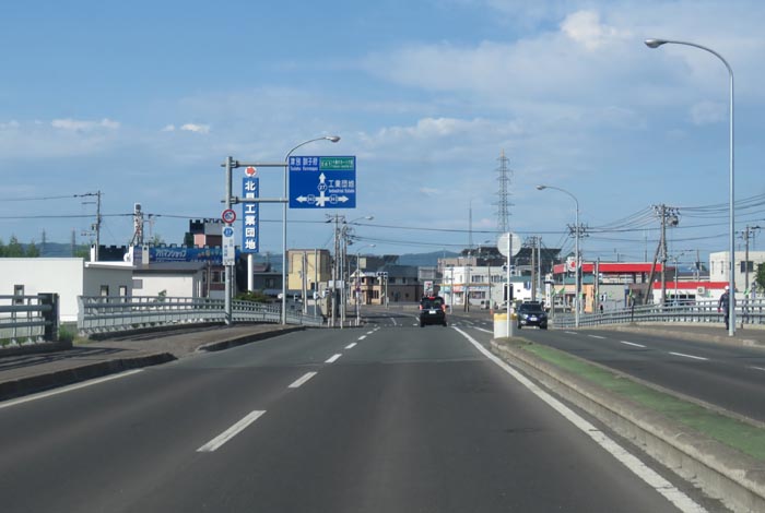 とん田通り、無加川橋を渡り錦町の南岸通り交差点交差点