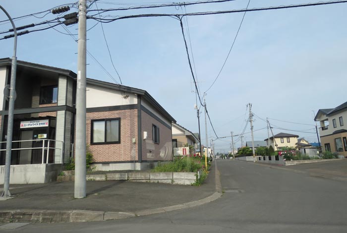 産岸通りから左折して西5号線のバス停前から北光通り方向