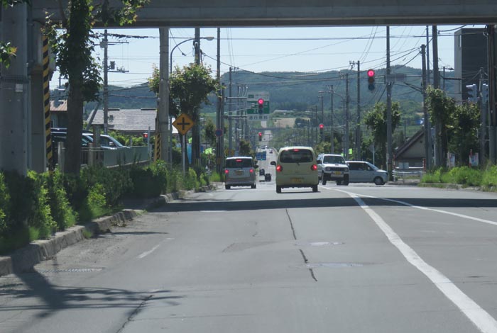 前方がJR石北本線高架橋、写真右が北見駅方向