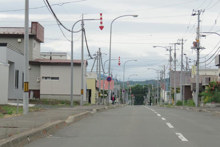 産岸通りから左折して西5号線のバス停前から北光通り方向