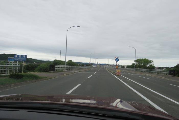 とん田通り、無加川橋を渡り錦町の南岸通り交差点交差点