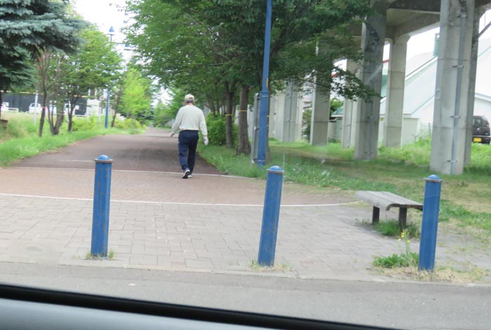 前方がJR石北本線高架橋、写真右が北見駅方向