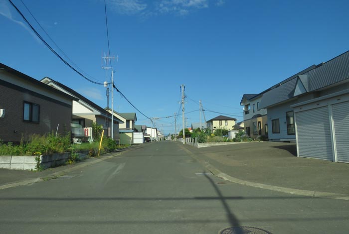 産岸通りから左折して西5号線のバス停前から北光通り方向