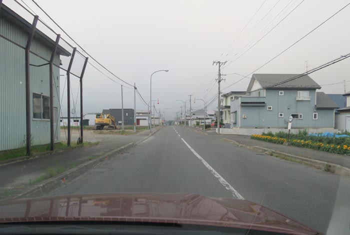 産岸通りから左折して西5号線のバス停前から北光通り方向