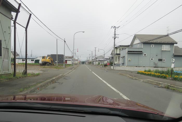 産岸通りから左折して西5号線のバス停前から北光通り方向