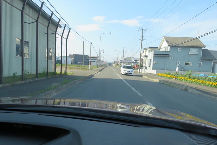 産岸通りから左折して西5号線のバス停前から北光通り方向