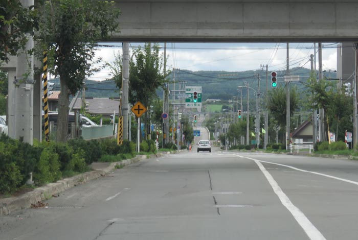 昭和通りのJR高架橋下から北見大橋方向
