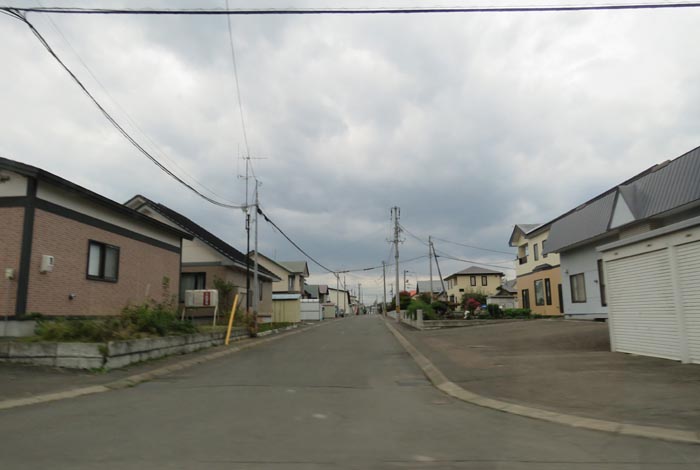 産岸通りから左折して西5号線のバス停前から北光通り方向