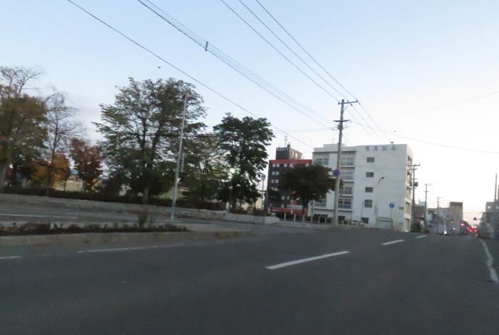 午前5時40分、松浦水産駐車場裏の通りを北3条通り側から北4条通り方向