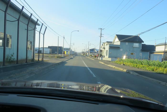 産岸通りから左折して西5号線のバス停前から北光通り方向