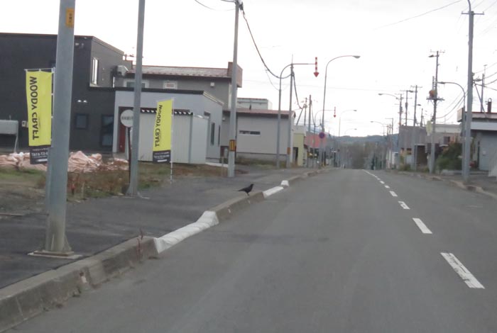 産岸通りから左折して西5号線のバス停前から北光通り方向