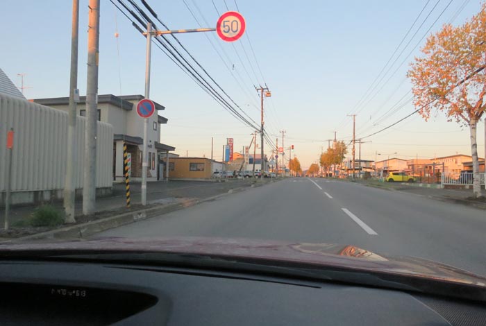 午前6時10分、南岸通り、野付牛自動車学校前から無加川町方向